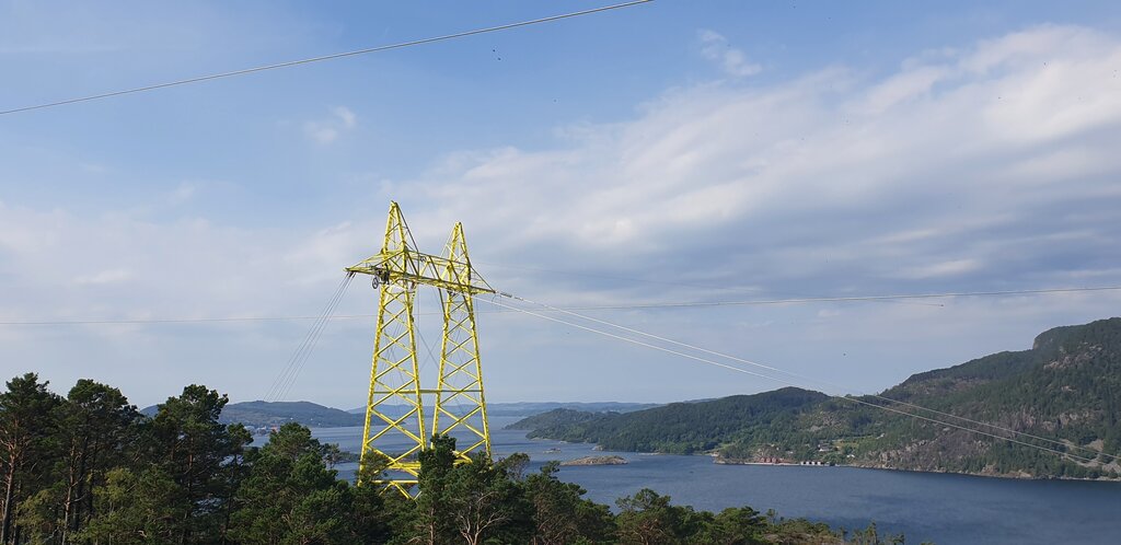 Utbyggingsprosjektet for ny 132 kV kraftledning mellom Dalen-Veland-Hjelmeland. Bruker komposittmaster fra Comrod med slisseboring for det som ikke er bæremaster