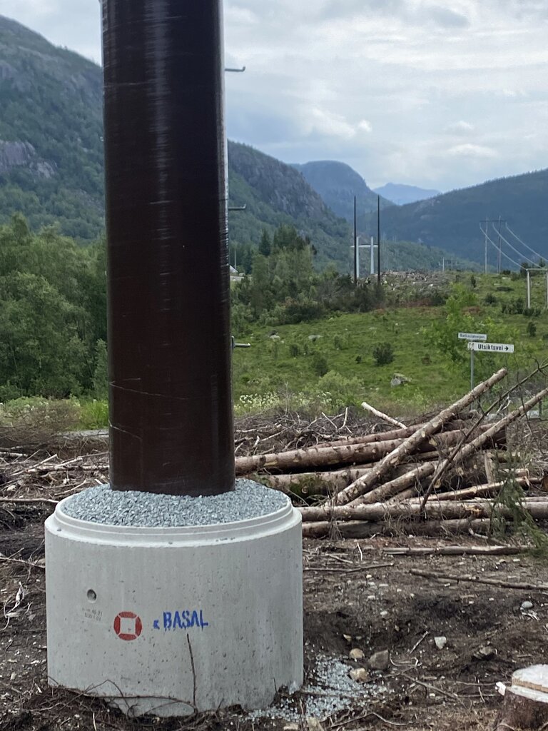 Komposittmast uten slisseboring i skogsterreng. Tau 2022.